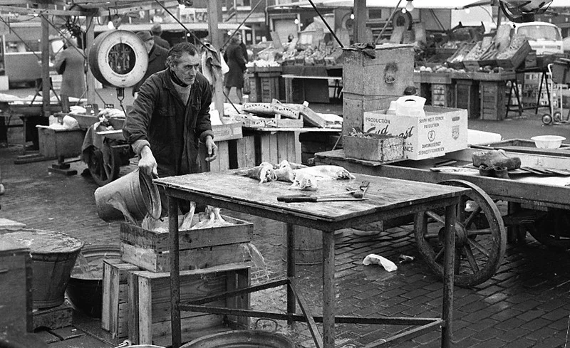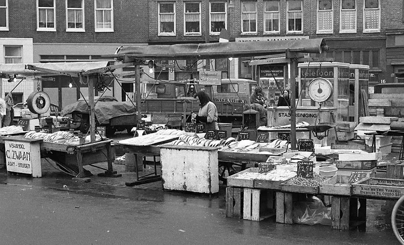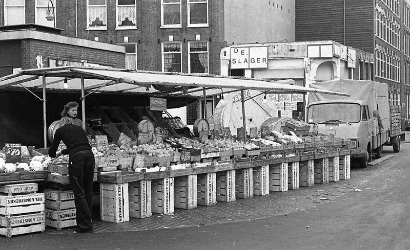 Pas in 1974 kocht ik een kleinbeeldcamera, natuurlijk de Oost-Duitse Praktika met de standaard 50mm lens. Het was niet de beste (misschien wel de slechtste) camera die toen verkrijgbaar was. De prijs was niet zo hoog dus het was een populaire camera. Met de planningservaring nog ergens in mijn hoofd verstopt ging ik de Amsterdamse markten, winkels, afbraakbuurten (in gelul kan je niet wonen) zoals de Dapperbuurt vastleggen.